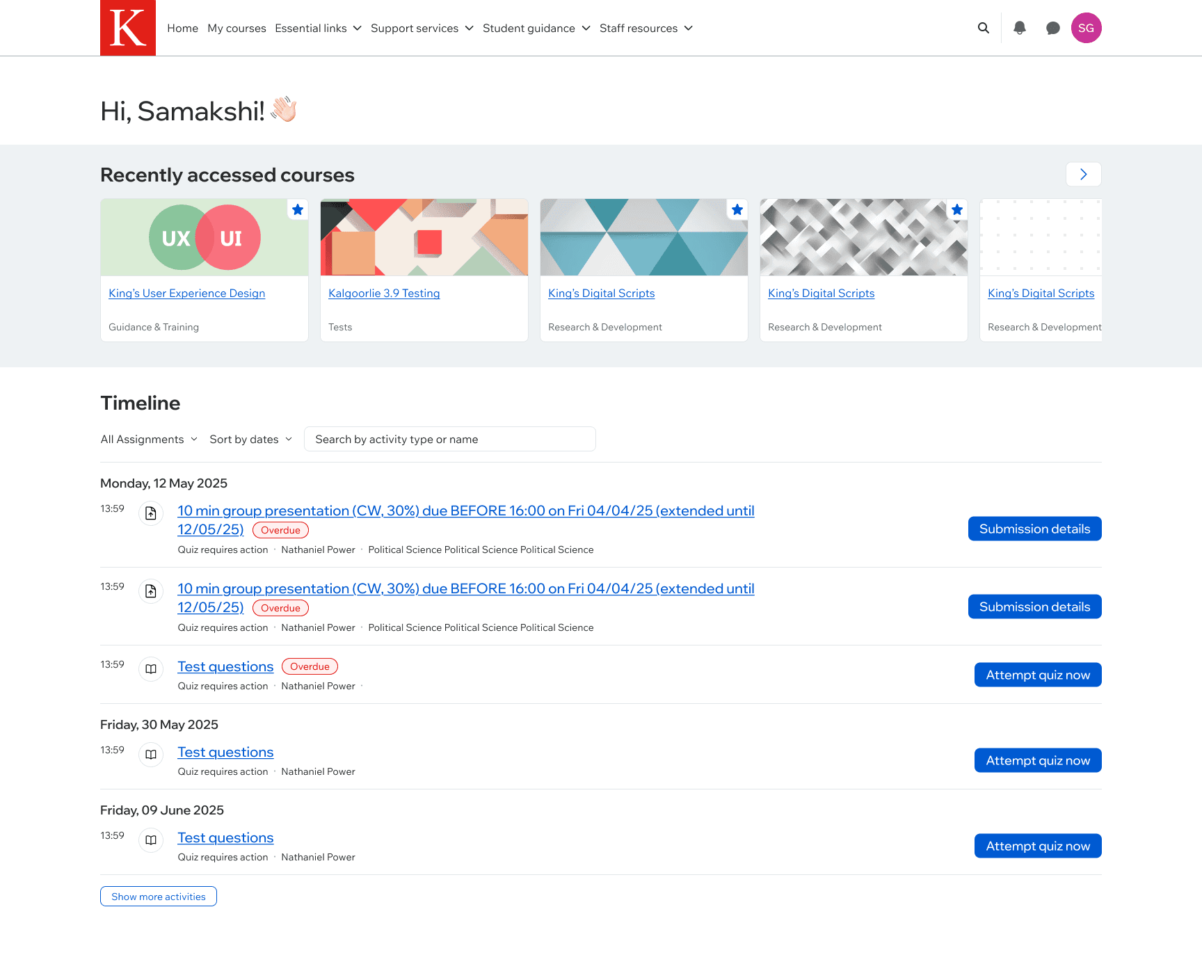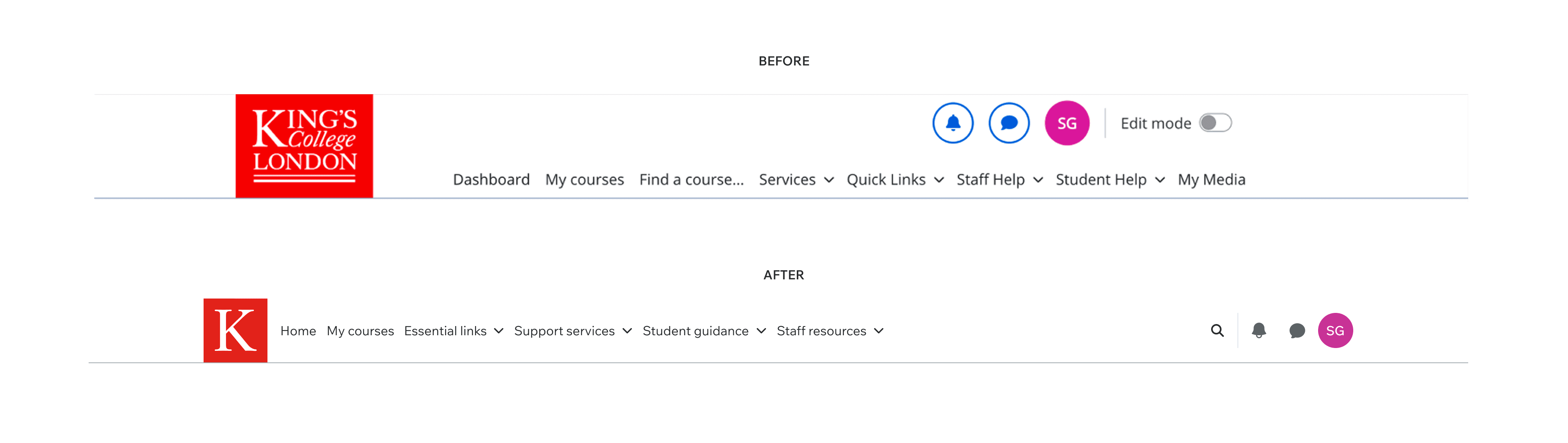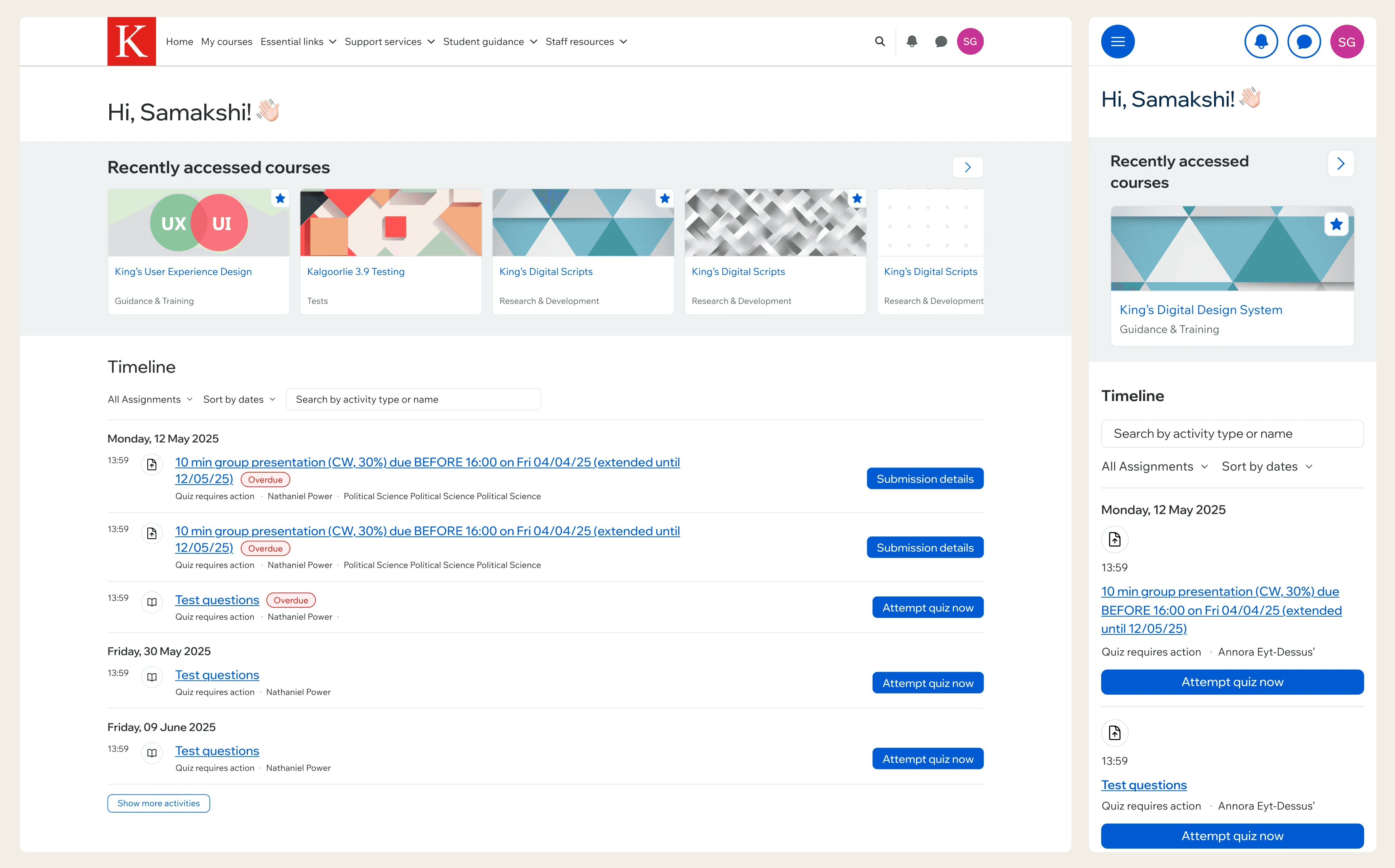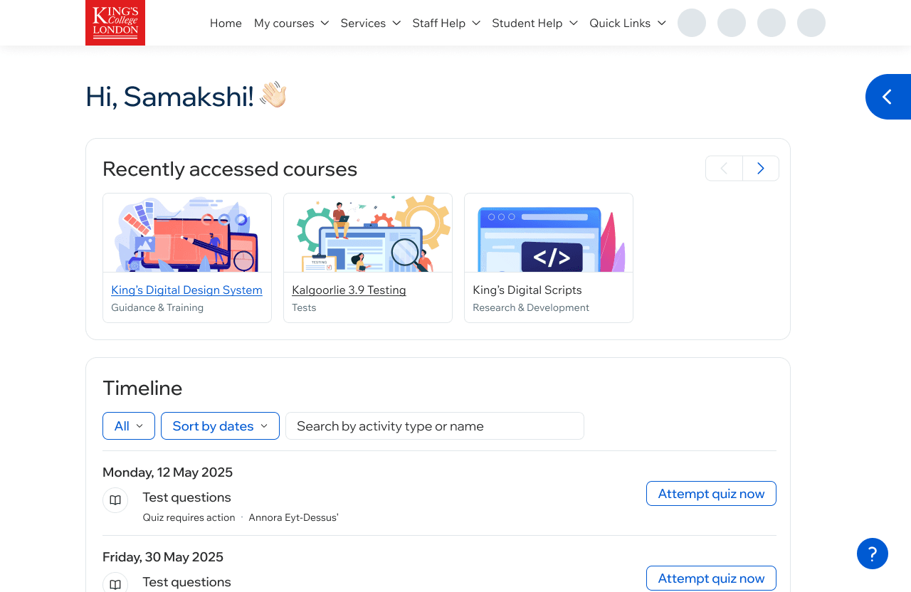 An end-to-end UX refresh of King's learning platform for 40,000+ students.