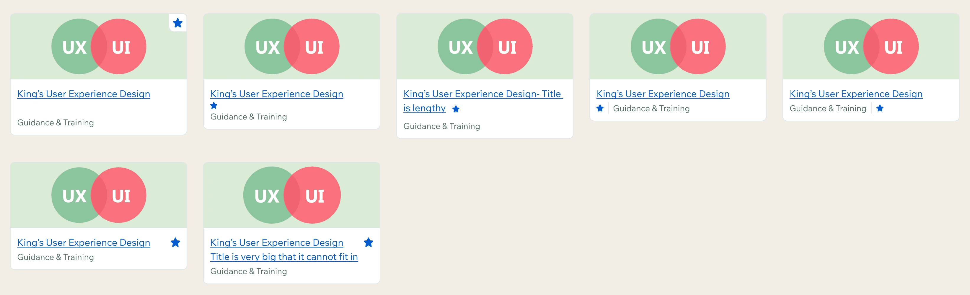 V3 also surfaced a feature the earlier versions hadn't. KEATS was moving onto Moodle 4.5.5 as part of the same release, and the upgrade is what made us aware that starring courses was something the platform already supported. It had been in Moodle's core since 2018, just not surfaced in the version KEATS was running, which was a clear win for students juggling several modules at once. The design question was where the star sat on the course card. I worked through placements on the thumbnail, inline with the title, beside the subtitle, and on its own row, testing which read fastest and held up when titles ran long. The thumbnail won.
