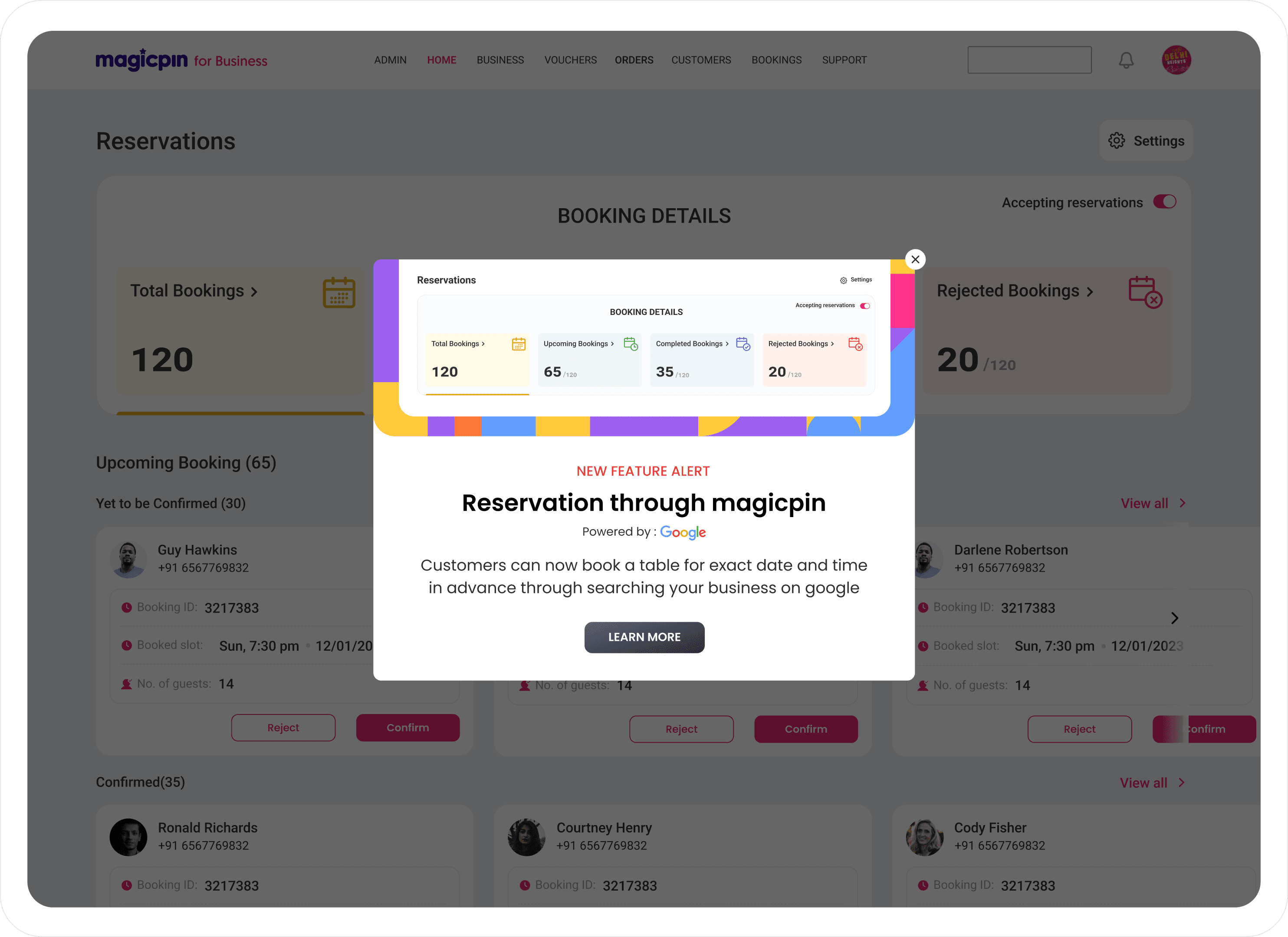 TL;DR: Designed an intuitive merchant dashboard that enhances table reservation management through Google for free. This dashboard has reduced booking time by 35% & boosted table turnover rates by 20%.