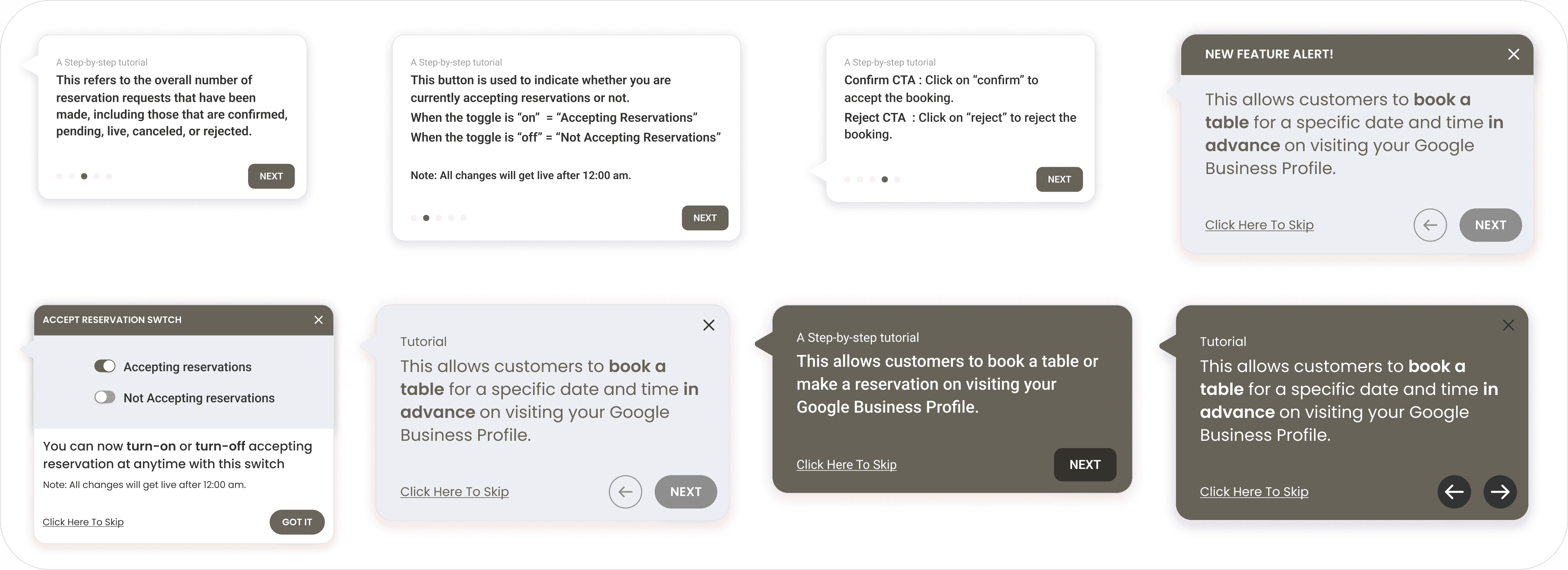 In the initial design version of the reservation platform, we did not offer onboarding. After research, we learned how valuable it was for users to understand how to use the platform, as restaurant owners face technological barriers. We gathered these insights and then added these coach marks.